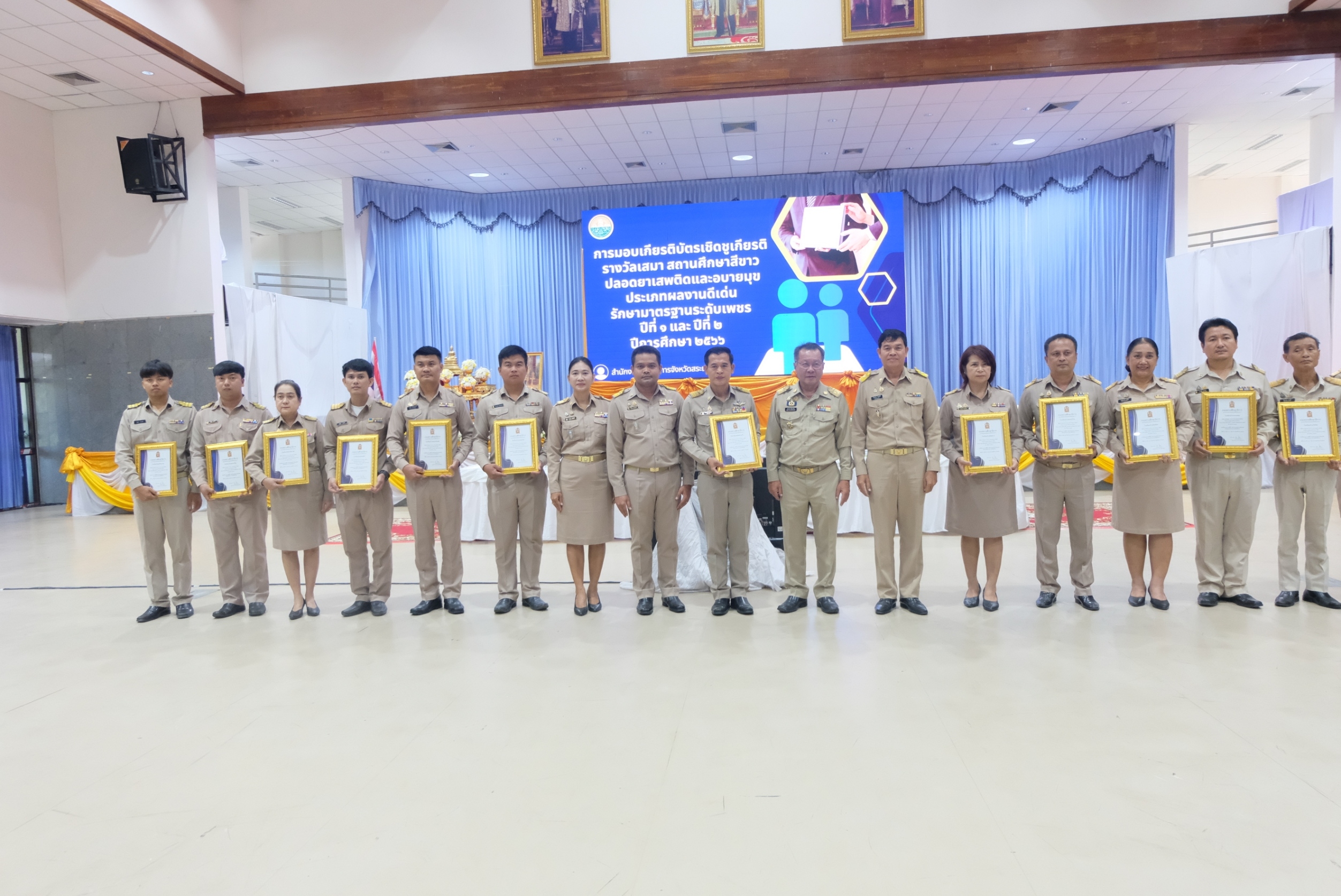 พิธีมอบเกียรติบัตรเชิดชูเกียรติ รางวัลเสมา สถานศึกษาสีขาว ปลอดยาเสพติดและอบายมุข..